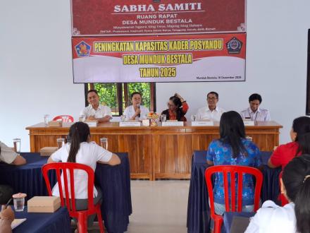 Kepala Desa Munduk Bestala, Bapak I Putu Sriyasa, SH, dalam sambutannya menegaskan, “Kader Posyandu adalah ujung tombak kesehatan dasar di desa. Dengan kompetensi yang terus ditingkatkan, kita bisa mendeteksi dini masalah kesehatan dan menekan angka stunting.”