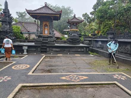 GOTONG - ROYONG DI PURA DALEM TETAP BERJALAN DI TENGAH GERIMIS