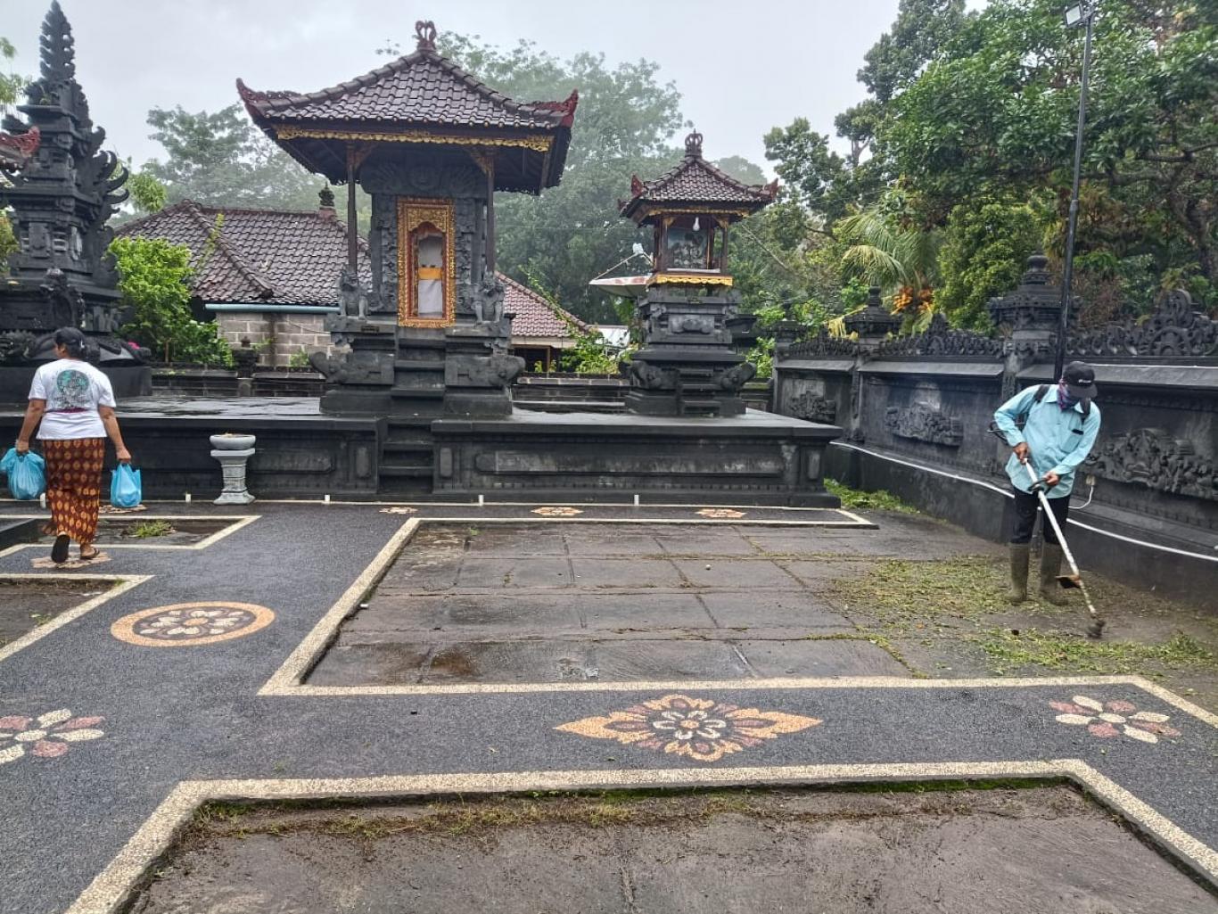 Sejak pukul 07.30 WITA, ibu-ibu PKK, kader Posyandu, perangkat desa, dan pemuda bergotong royong membersihkan Pura Dalem, menandai dimulainya program PKK dan Posyandu tahun 2026.