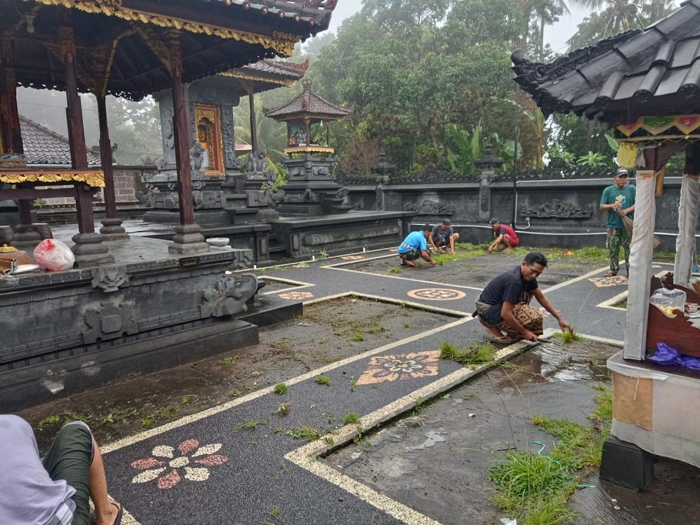 - GOTONG - ROYONG DI PURA DALEM TETAP BERJALAN DI TENGAH GERIMIS