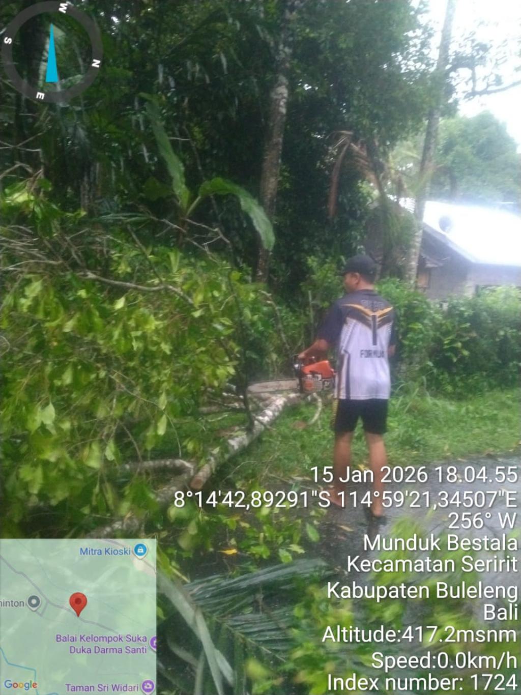 Munduk Bestala - 15 Januari 2026 – Warga Dusun Sari, Desa Munduk Bestala, bersama-sama membersihkan sebuah pohon cengkeh yang tumbang. Aksi yang berlangsung pada Kamis (15/1) pagi ini dipimpin langsung oleh Kepala Dusun (Kadus) Sari, Bapak Gede Adnyana.