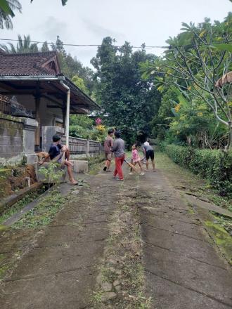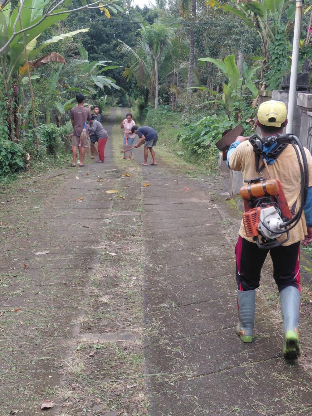 Sementara itu, di Banjar Dinas Sari, kegiatan gotong royong dilaksanakan pada sore hari pukul 16.00 WITA. Warga setempat berfokus pada pembersihan akses jalan di wilayah Taman Sri Widari. Dengan peralatan seadanya seperti cangkul, sabit, dan sapu lidi, mereka bergotong royong menciptakan lingkungan yang bersih dan asri.